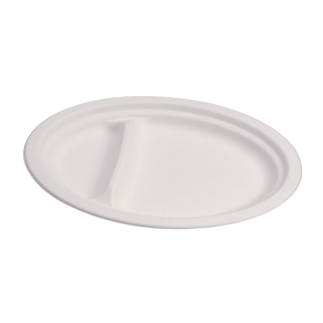 Piatto Ovale in Polpa Bio Bianco Due Scomparti 26x19 cm