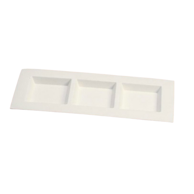 Piatto rettangolare in polpa di cellulosa tre scomparti