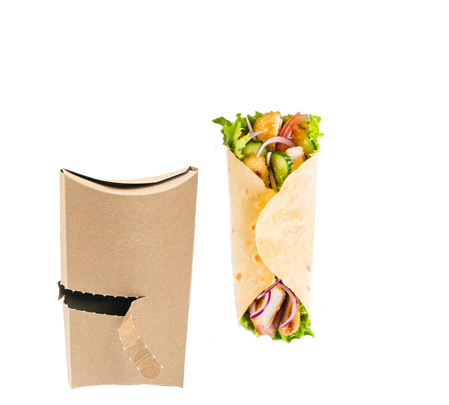 Porta stile e praticità al tuo servizio di ristorazione con il nostro astuccio wrap in cartoncino avana, perfetto per kebab, piadine, burritos e altri snack.