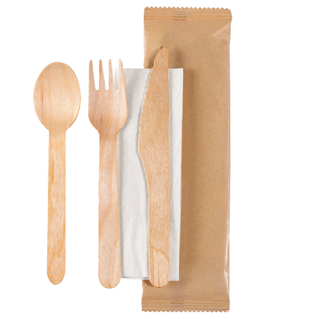 €3910Prezzo unitario /Non disponibileSet tris forchetta, cucchiaio e coltello imbustato con tovagliolo