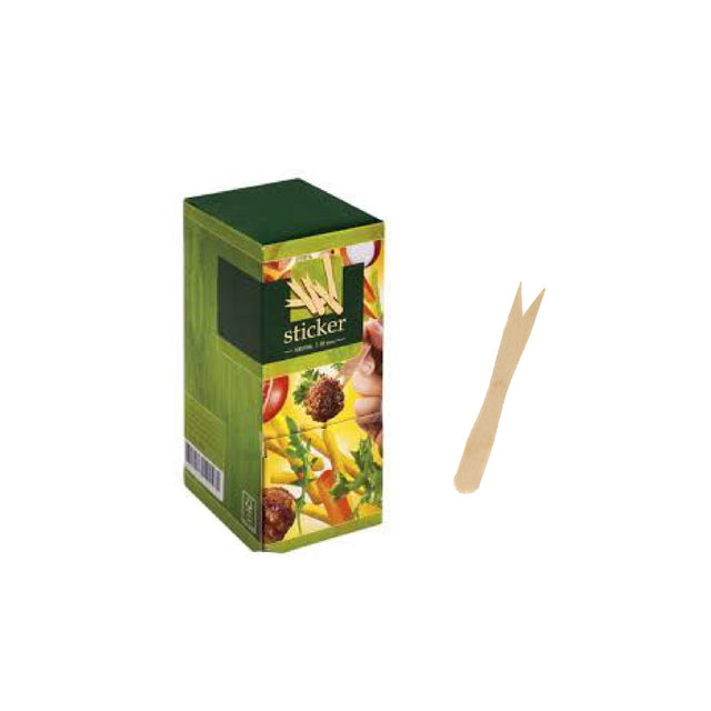 Stickers in legno bio per patatine con due punte e dispenser - 85mm