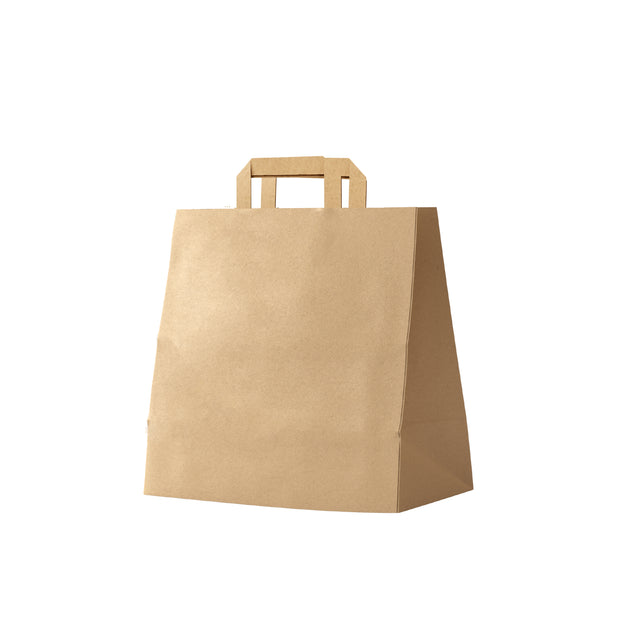 Le shopper in carta color avana con fondo largo e maniglia piatta sono la scelta perfetta per un trasporto pratico ed ecologico. Ideali per negozi, boutique, alimentari, pasticcerie e molto altro, offrono una combinazione di robustezza, stile e sostenibilità.
